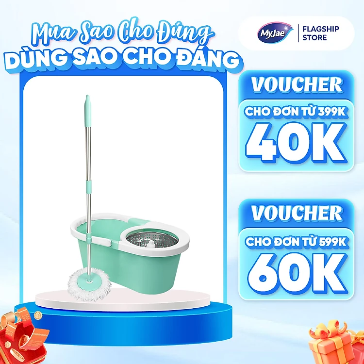 Bộ Lau Nhà MyJae Sợi Microfiber Xoay 360 Độ Thông Minh, Lau Sạch Nhanh Khô 134cm