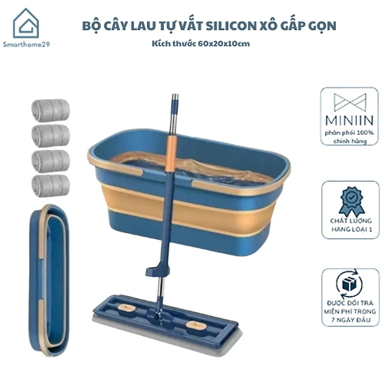 Bộ Cây Lau Tự Vắt Nhà Kèm Xô Gấp Gọn Silicon Thông Minh, Tặng Kèm 4 Bông Lau Mẫu Mới 2025 - HÀNG CHÍNH HÃNG MINIIN
