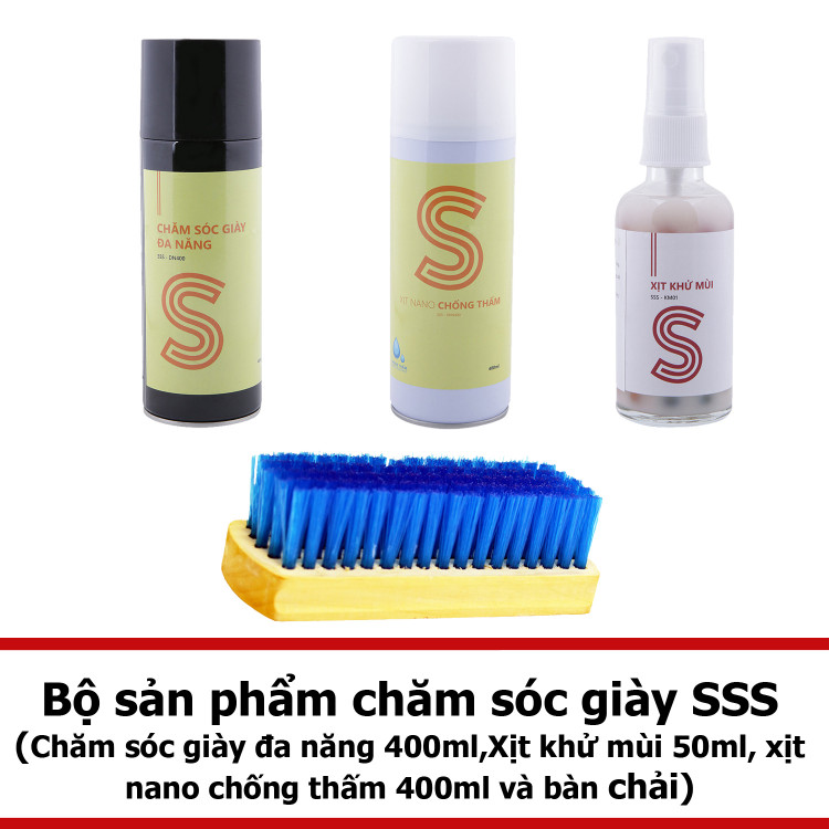 Giới thiệu bộ sản phẩm chăm sóc giày đa năng 400ml, xịt khử mùi 50ml,xịt nano chống thấm 400ml và bàn chải COMBOSSS13