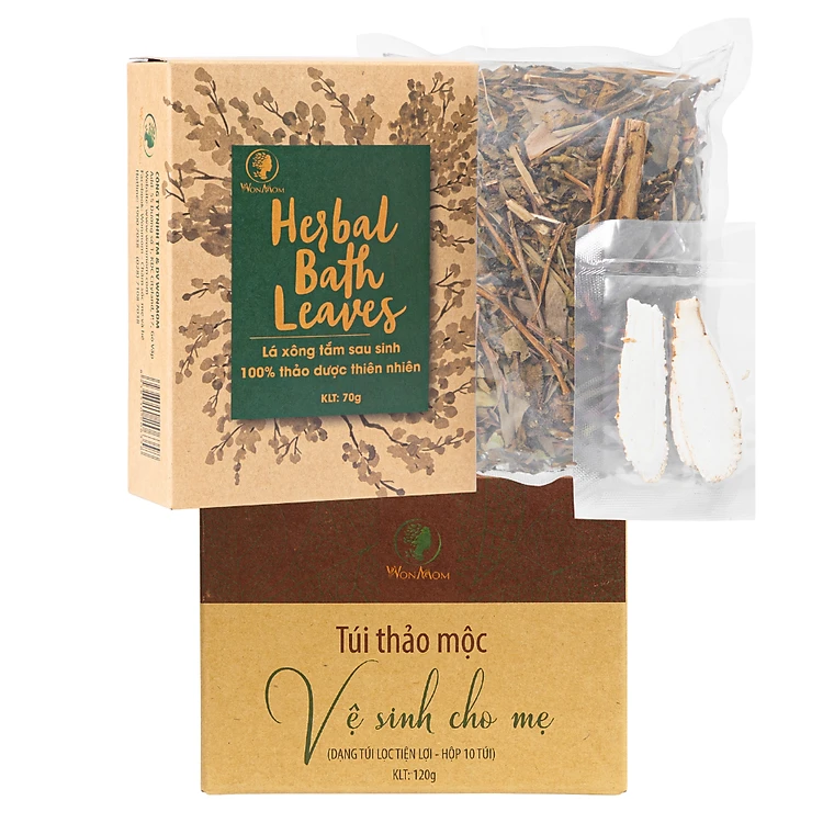 Bộ chăm sóc mẹ là siêu nhân Wonmom (1 lá xông + 1 hộp thảo mộc vệ sinh mẹ)