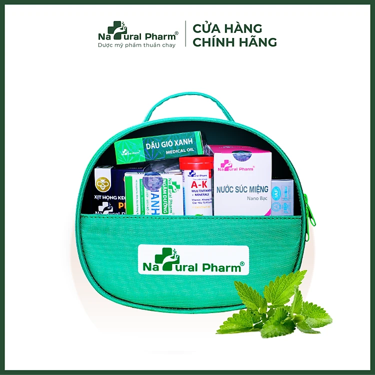 Bộ Chăm Sóc Sức Khỏe Tiện Dụng gồm: Dầu gió xanh, Vitamin C sủi, Xịt mũi xoang, Nước súc miệng Nano Bạc, Xịt họng keo ong, Viên ngậm dưỡng thanh tâm.
