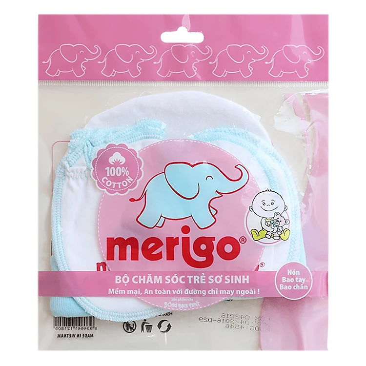 Bộ Chăm Sóc Trẻ Sơ Sinh Merigo Bông Bạch Tuyết TP-BABY02 - Trắng Viền Xanh