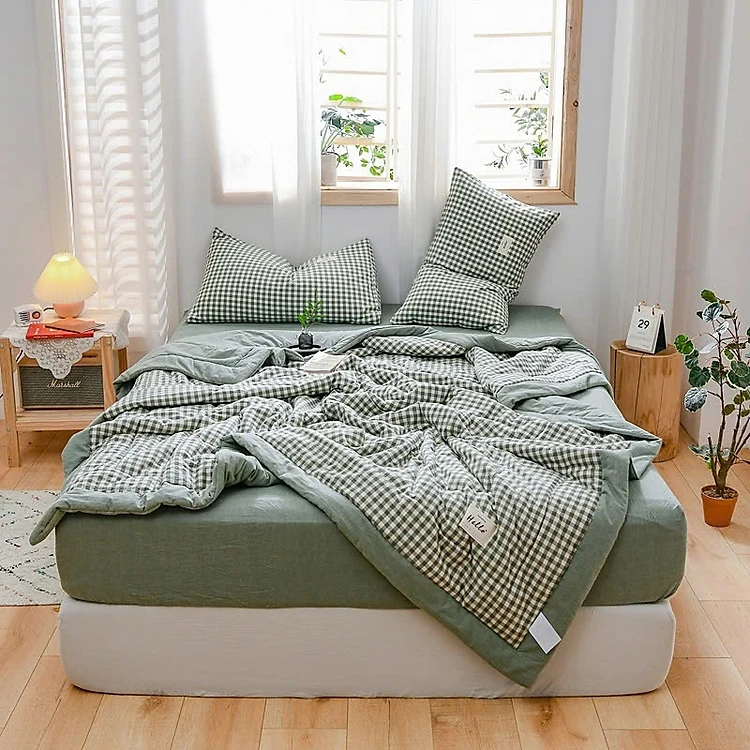 Bộ chăn chần ga giường cotton Tici kẻ LIDACO cao cấp (Nhiều mẫu lựa chọn)