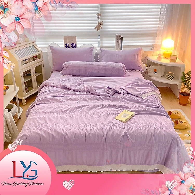 Bộ chăn ga gối 5 món cotton đũi bèo mềm mịn, thoáng mát