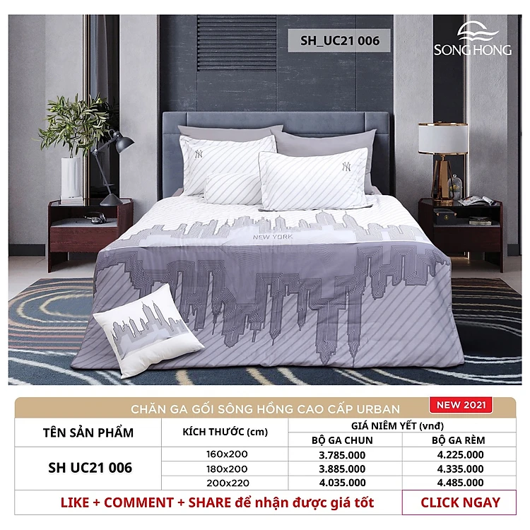 Bộ chăn ga gối cao cấp Sông Hồng UC21006