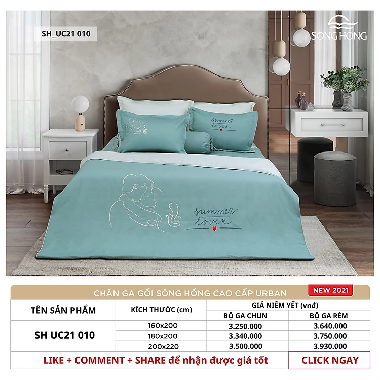 Bộ chăn ga gối cao cấp Sông Hồng UC21010