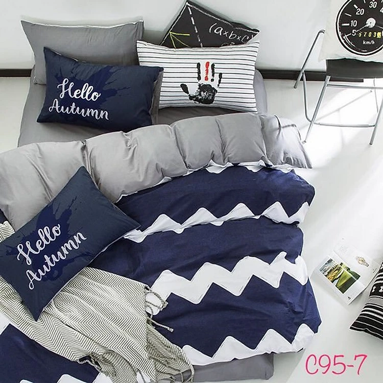 Bộ Chăn Ga Gối Cotton C95-7 - Xanh Dương Đậm