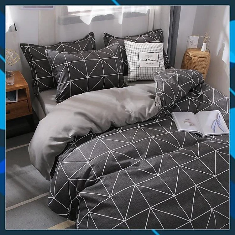 Bộ chăn ga gối Cotton poly M2T bedding, vỏ chăn mền, drap ga giường và 2 vỏ gối - Pl Kẻ bàn cờ