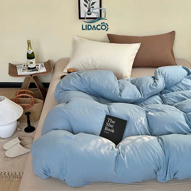 Bộ chăn ga gối cotton tici LIDACO notag - Xanh ga be