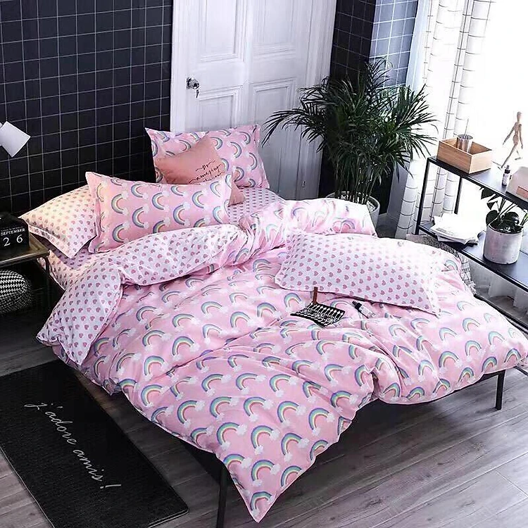 Bộ chăn ga gối Hàn Quốc cầu vồng hồng