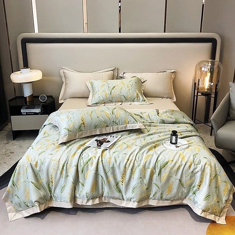 Bộ Chăn Ga Gối Lụa Thái 4 Món ( 1 ga + 2 vỏ gối đầu + 1 chăn chần bông, tặng kèm 1 vỏ gối ôm ) Mềm mịn mát lạnh như kem