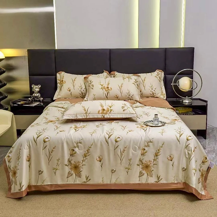 Bộ Chăn Ga Gối Lụa Thái 4 Món ( 1 ga + 2 vỏ gối đầu + 1 chăn chần bông, tặng kèm 1 vỏ gối ôm ) Mềm mịn mát lạnh như kem