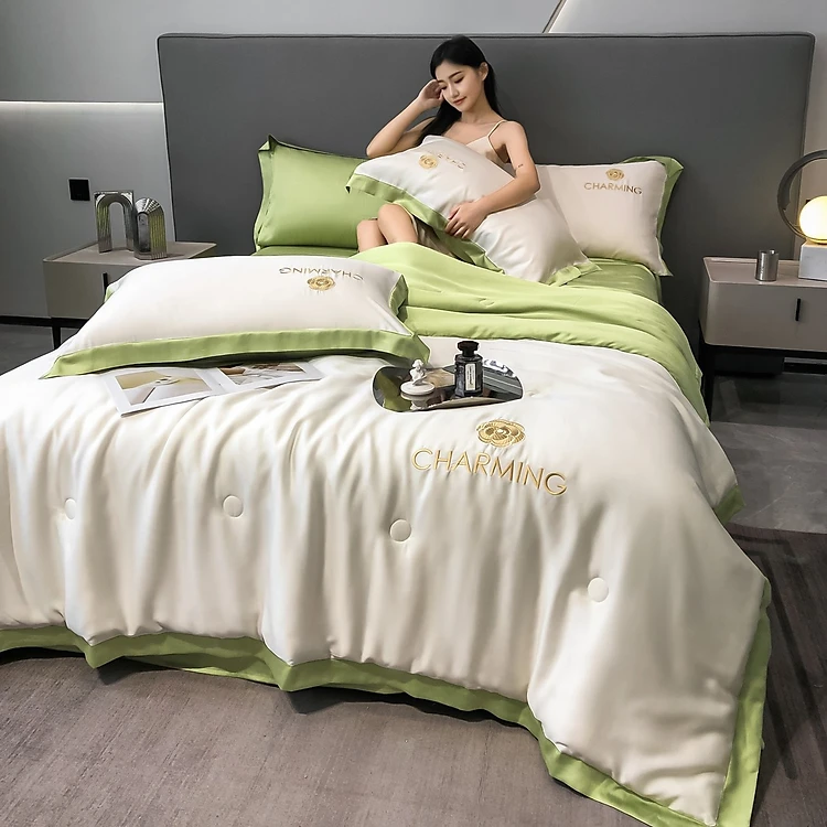 Bộ chăn ga gối phi lụa sang trọng mẫu mới năm 2023