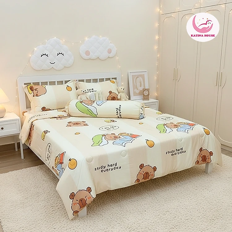 Bộ Chăn Ga Gối Tencel 60s Katina House, mát lạnh mịn màng, thấm hút tốt, họa tiết trẻ em