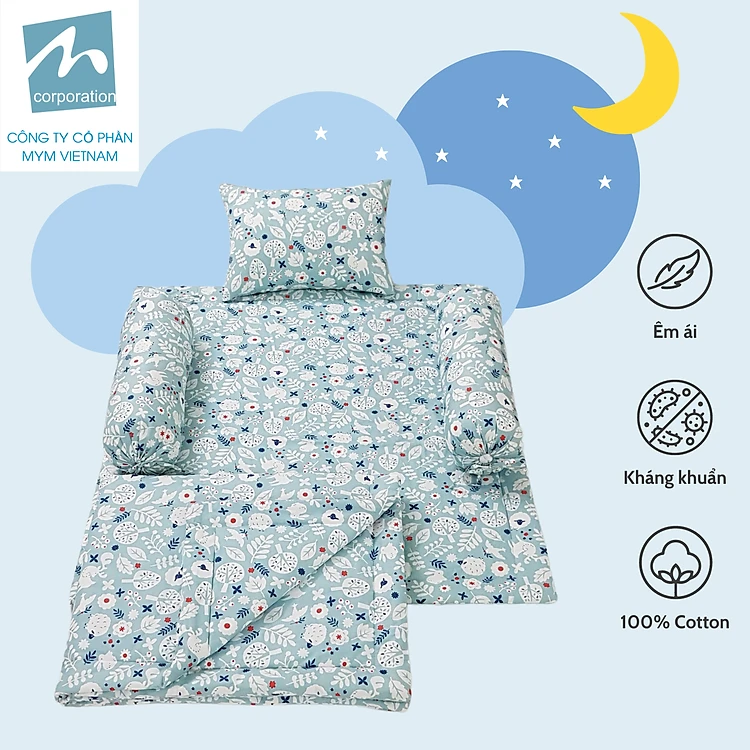 Bộ chăn gối nệm cho bé MYM chất liệu vải Cotton mềm mại, thấm hút