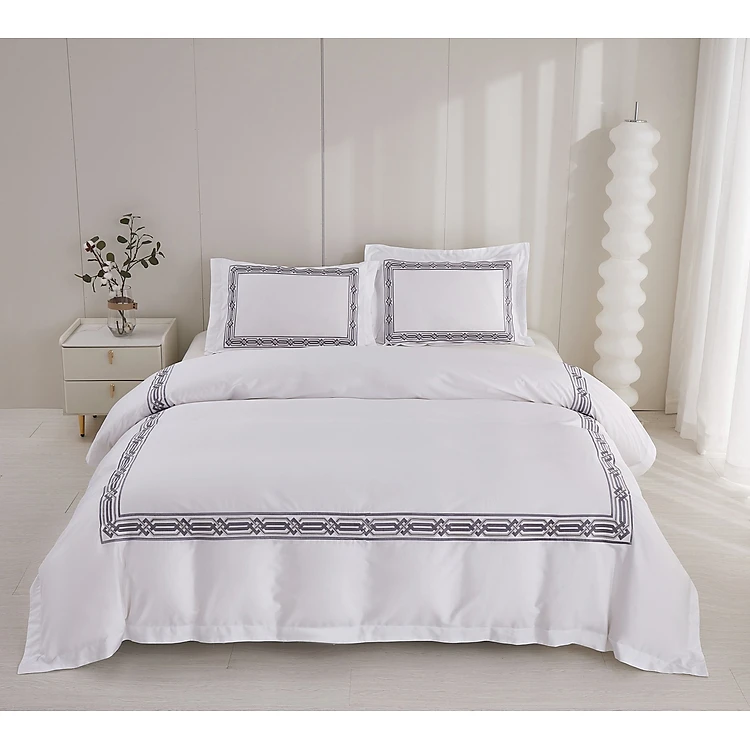 Bộ chăn ra Casa Bello Home - Set Serenity Grey Cotton lụa satin thêu họa tiết thêu 5 món
