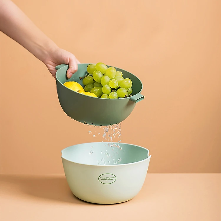 Bộ Chậu Rổ Nhựa PP Đựng Rau Củ Quả 2 Lớp Đa Năng