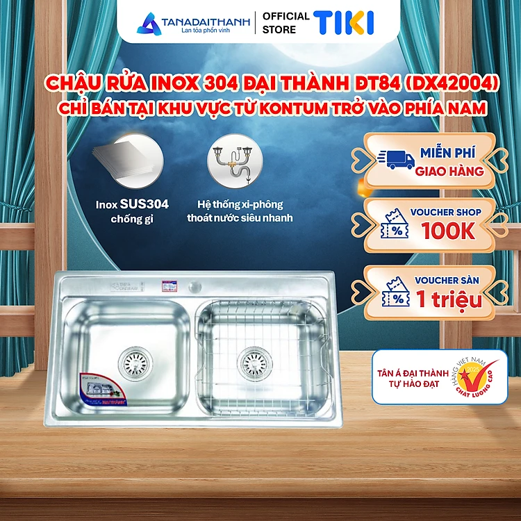 Bộ chậu rửa inox 304 Đại Thành DX42004 - Hàng chính hãng, Chỉ bán khu vực Miền Nam