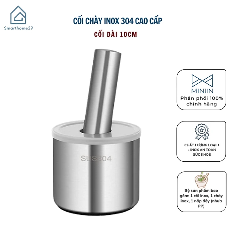 Bộ Chày Cối Inox 304 Nguyên Khối Không Vết Hàn Có Lắp Đạy Kèm Chày Dã Đồ Cực Nhuyễn Mịn Cho Gia Đình - HÀNG CHÍNH HÃNG MINIIN