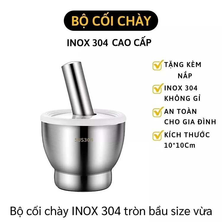Bộ Chày Cối Inox 304 Nguyên Khối Không Vết Hàn Có Nắp Đậy Kèm Chày Dã Đồ Cực Nhuyễn Mịn Cho Gia Đình - Không Han Gỉ Bảo Hành Trọn Đời