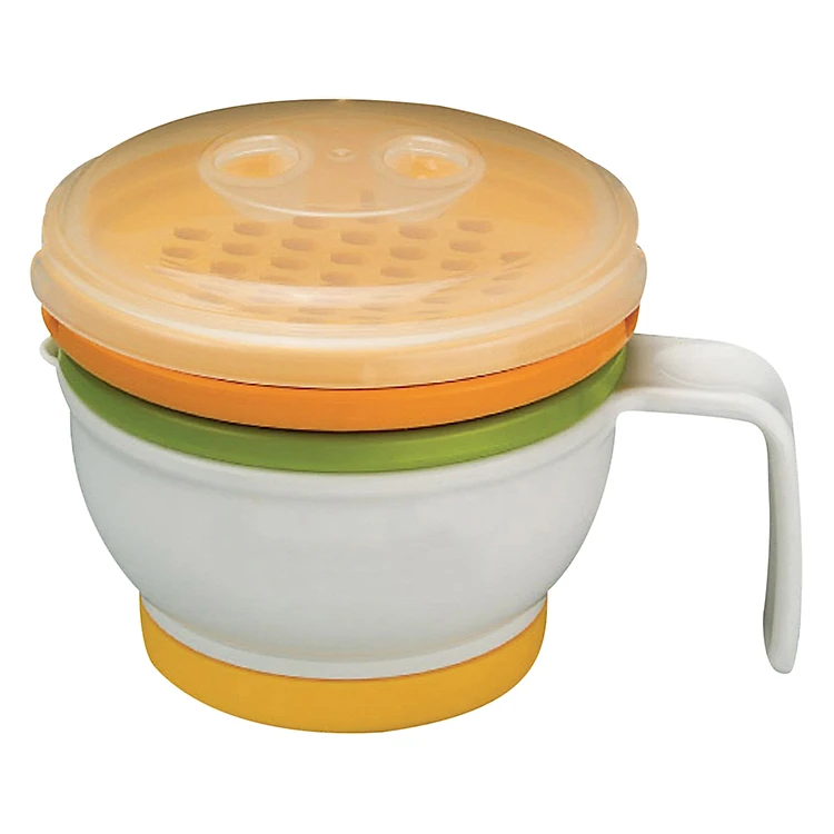 • Giai đoạn 5 tháng trở đi: bát  trộn đều hỗn hợp thức ăn nhuyễn có thể dùng trong lò vi sóng. Ngoài ra còn có thêm thìa dùng để đo và thìa cho bé ăn