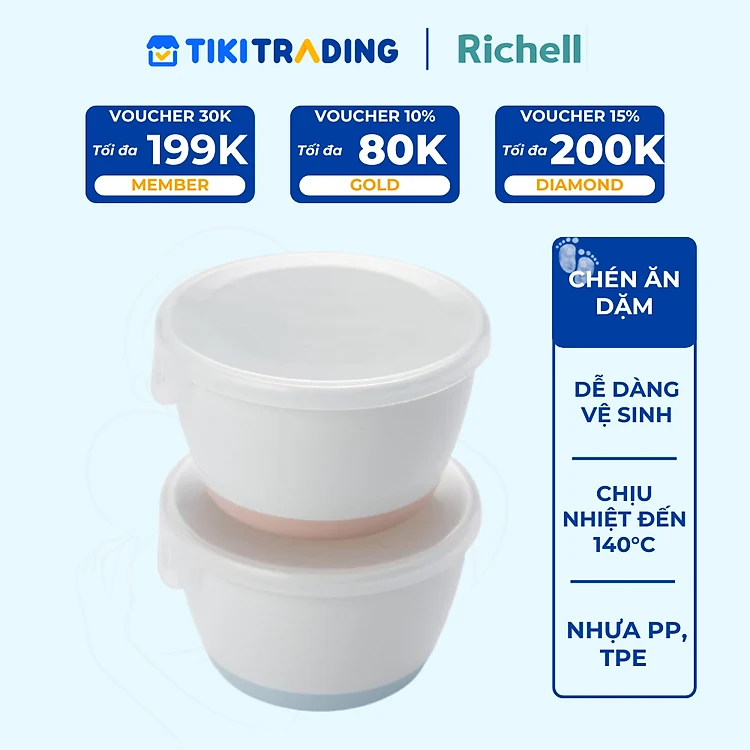 Bộ chén ăn dặm T.L.I (Kèm nắp và muỗng) Richell