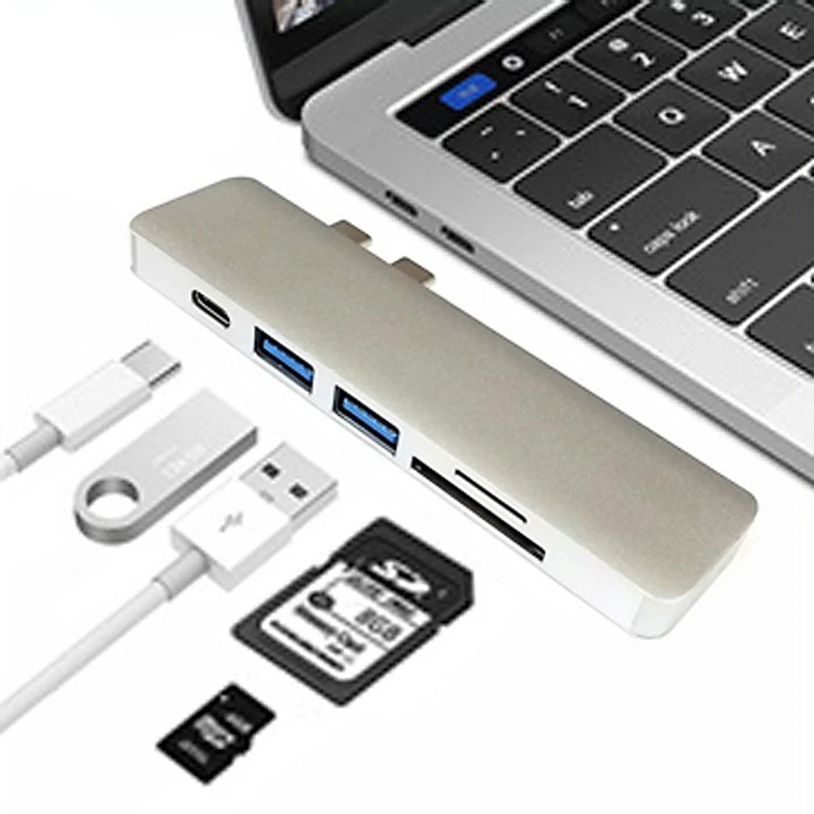 Bộ chia 2 cổng USB-C ra 2 cổng USB-A và 1 cổng USB-C kiêm đầu đọc thẻ