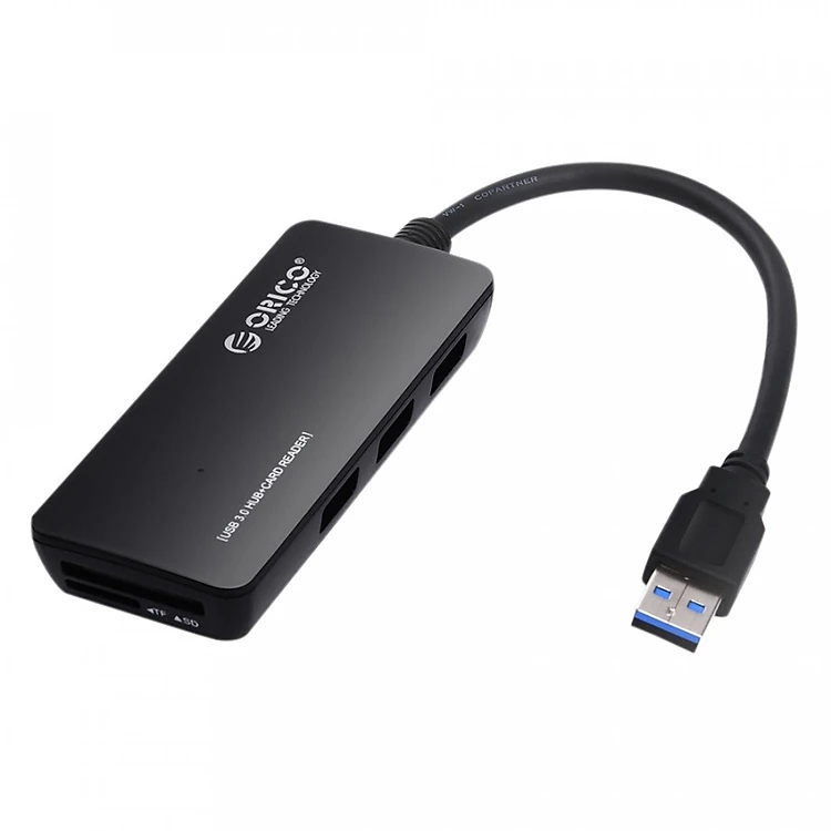 Ngoài 3 cổng USB 2.0 Type A, sản phẩm còn được tích hợp 1 khe cắm thẻ nhớ SD và 1 khe cắm thẻ nhớ TF (MicroSD). Với HUB Orico H3TS-U2, bạn có thể sử 3 USB, 1 thẻ nhớ SD và 1 thẻ nhớ TF cùng lúc mà không cần lo bị thiếu đầu cắm.