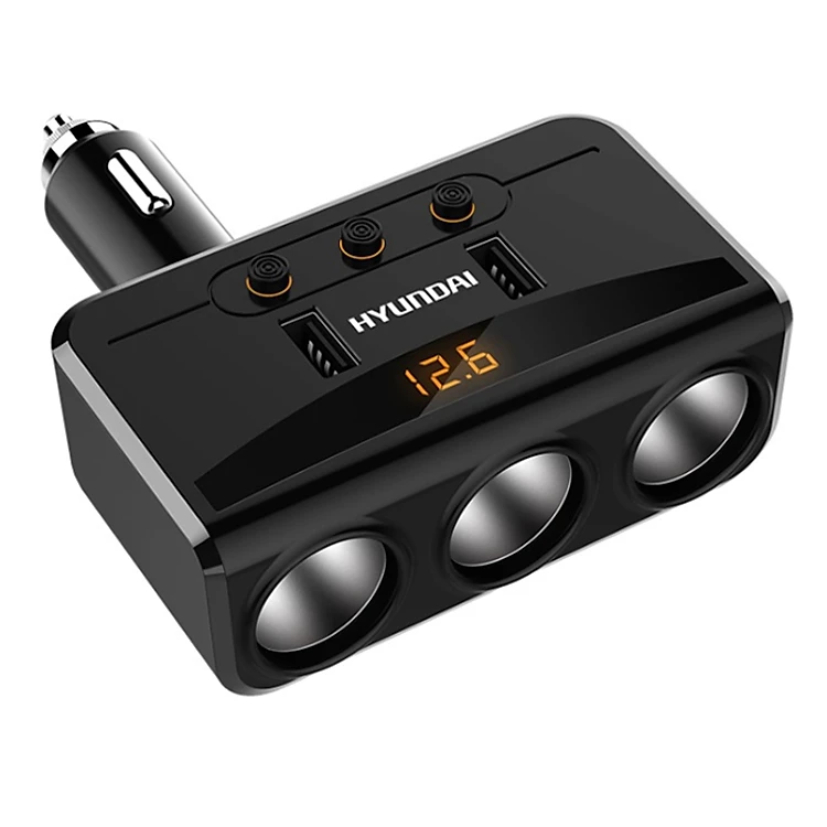 • Bộ chia tẩu sạc Huyndai HY-29 có chức năng ổn định điện áp giúp thiết bị an toàn. Đèn LED theo dõi điện áp Ắc-quy xe và dòng sạc thiết bị (Car Charger).