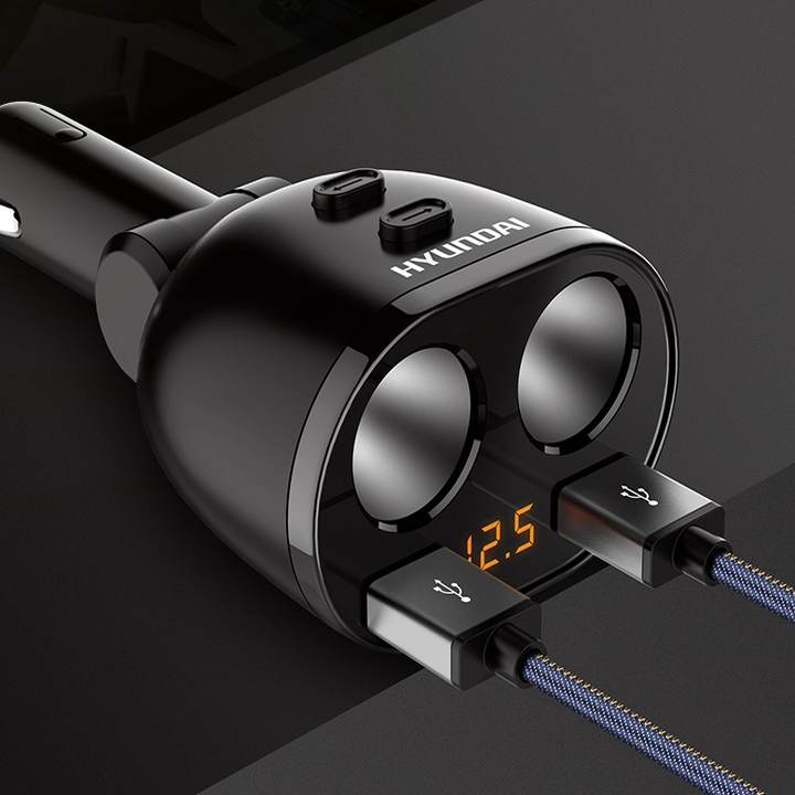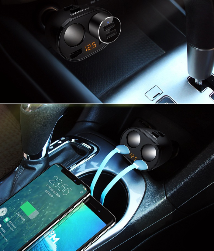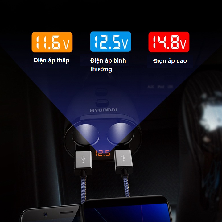 Bộ chia tẩu sạc ô tô nhãn hiệu Hyundai HY-16, 2 cổng usb siêu phẩm Huyndai