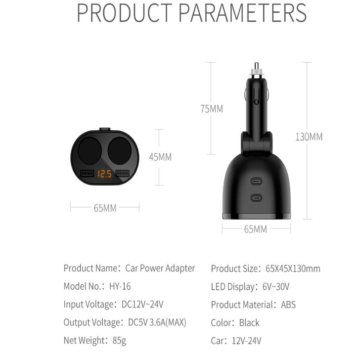 - Bộ chia tẩu thiết kế thời trang, kích thước nhỏ gọn để đặt vừa trong chỗ để cốc trên ô tô
