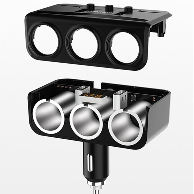 Bộ chia tẩu sạc oto, xe hơi cao cấp 3 tẩu - 2 cổng USB có LED báo ắc quy HD