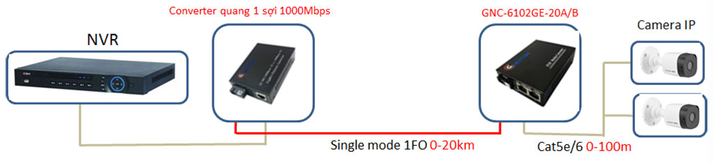 bộ chuyển đổi quang poe GNC-6102GE-20A gồm 1 cổng quang 2 cổng poe