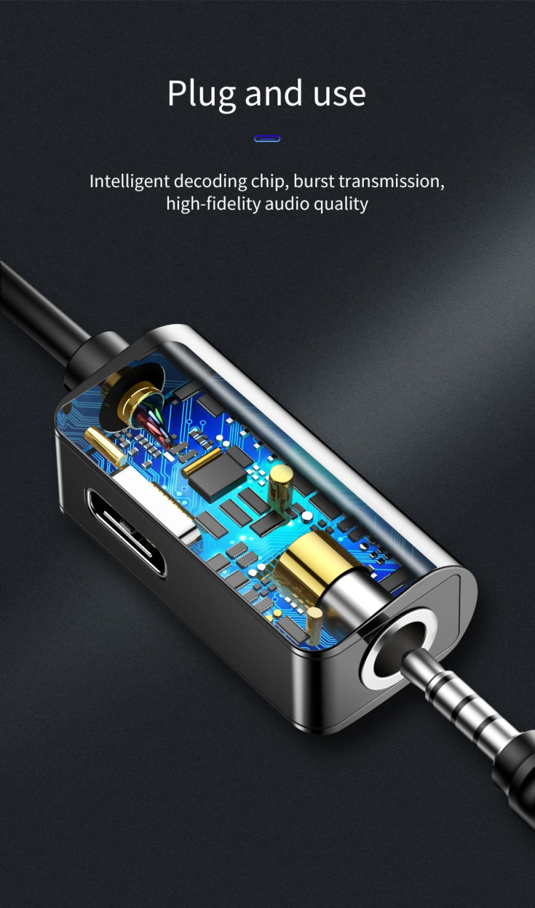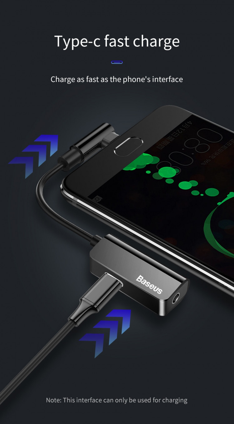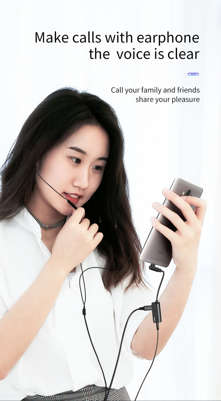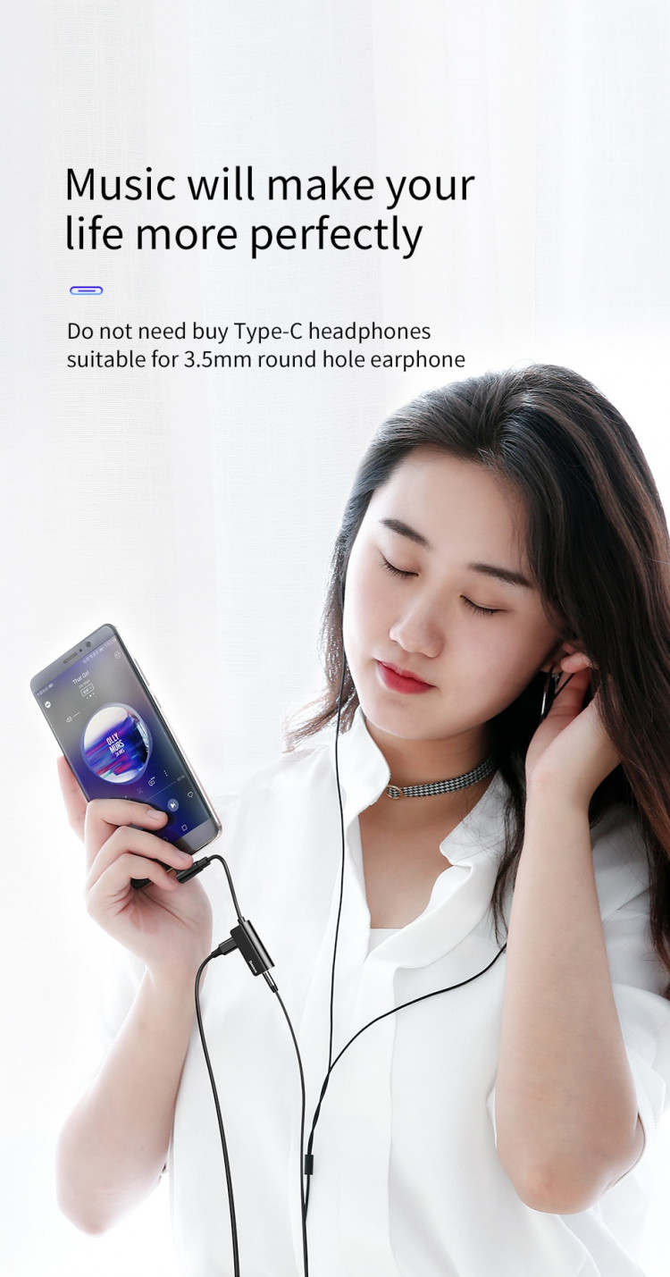 Bộ chuyển Type-C sang Audio 3.5mm + Type-c cho Samsung, HTC, Xiaomi Baseus L45 - Hàng chính hãng