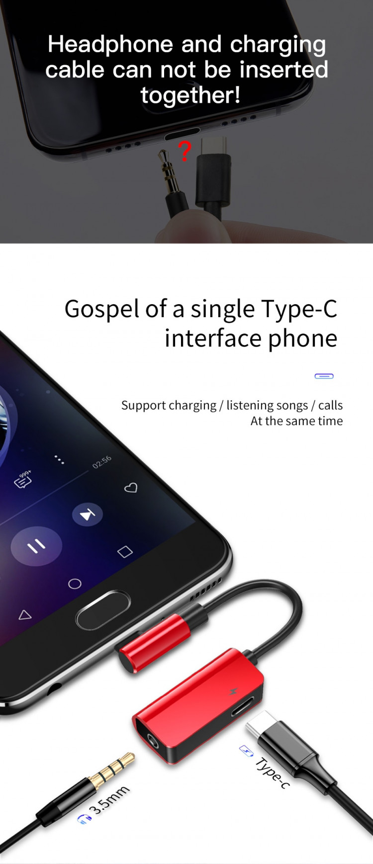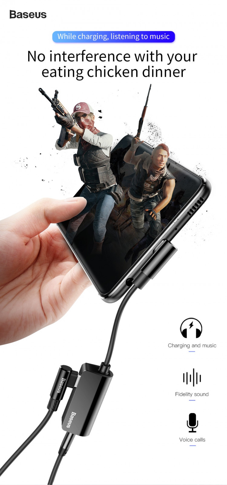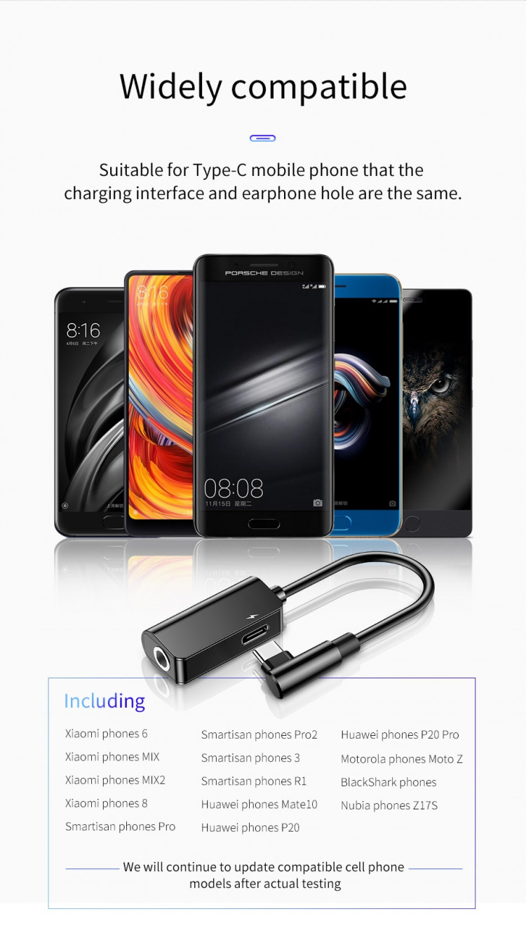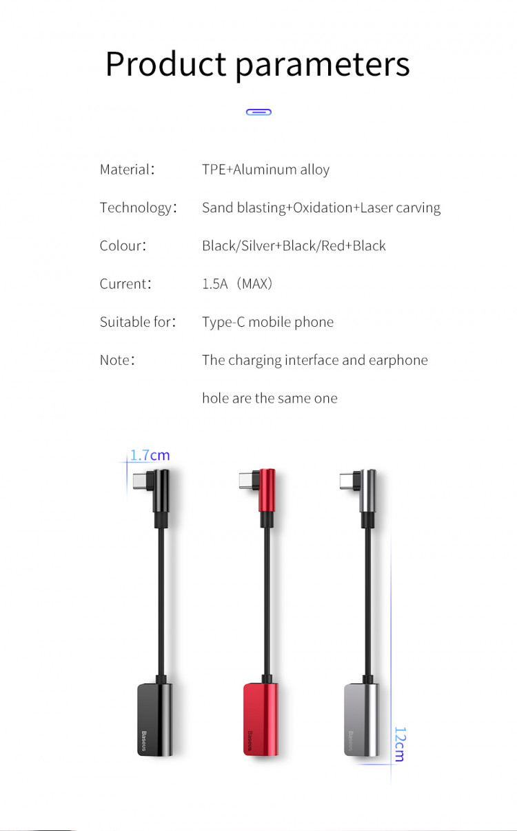 Bộ chuyển Type-C sang Audio 3.5mm + Type-c cho Samsung, HTC, Xiaomi Baseus L45 - Hàng chính hãng