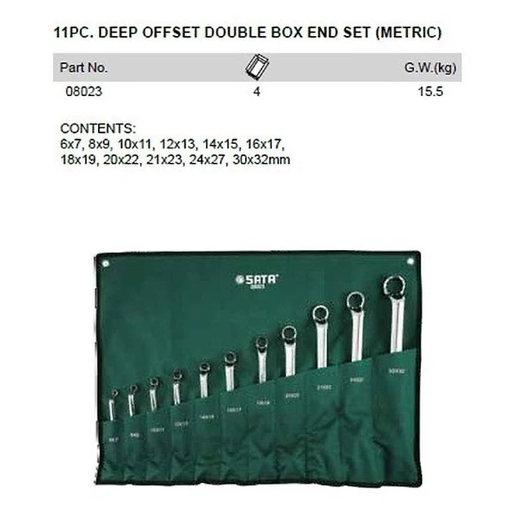 Bộ cờ lê hai đầu vòng Sata 08023 11 chi tiết 6×7, 8×9, 10×11, 12×13, 14×15, 16×17, 18×19, 20×22, 21×23, 24×27, 30x32mm