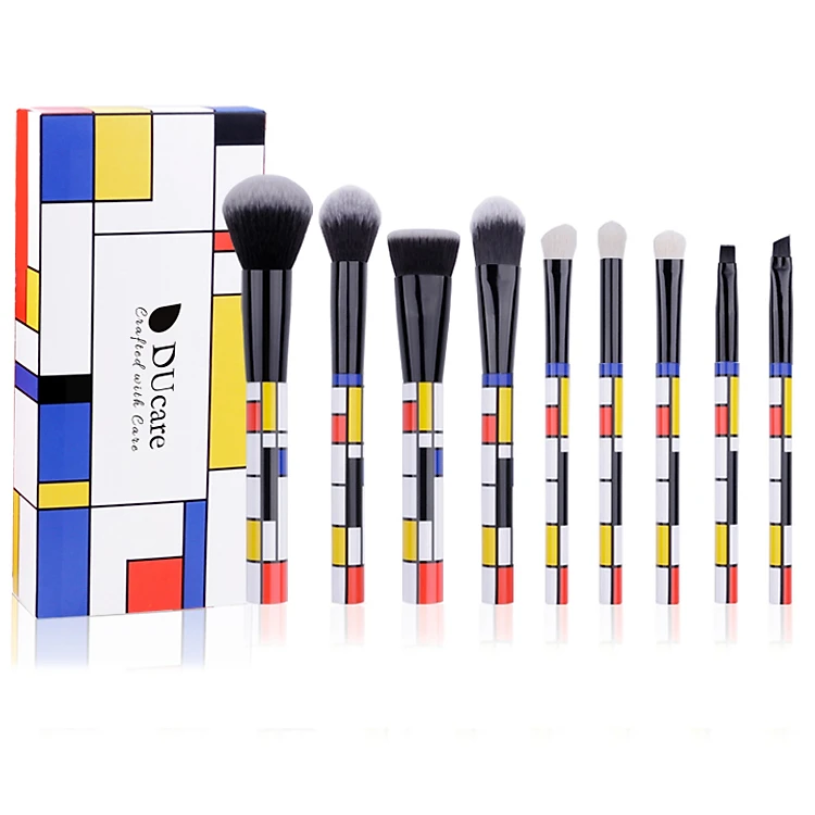 Bộ cọ trang điểm 9 cây Ducare 9 PCS Makeup Brushes Set Red Blue Yellow