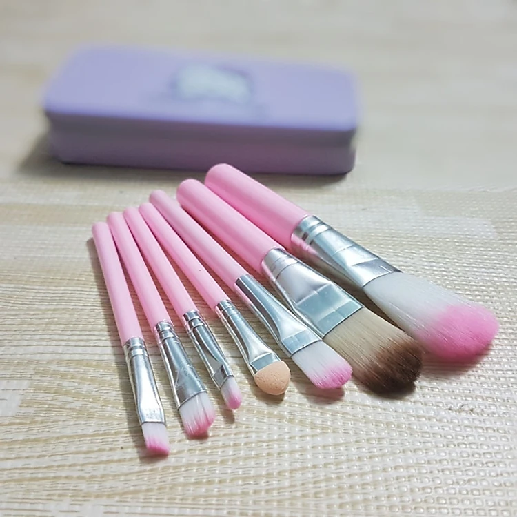 Bộ Cọ Trang Điểm gồm 7 cây có chữ Hello Kitty trên thân cọ và được đựng trong hộp nhỏ gọn xinh xắn, lông cọ mềm với thân cọ màu hồng dễ thương