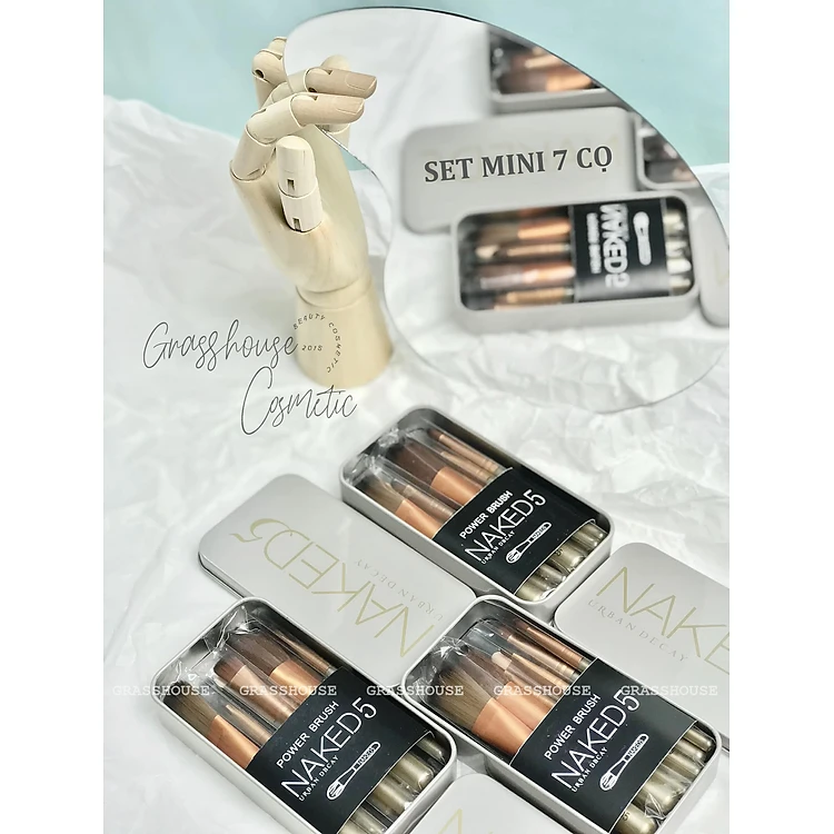Bộ Cọ Trang Điểm Naked 5 (7 Cây) Nhỏ Gọn Cao Cấp - Có Hộp Đựng Tiện Dụng