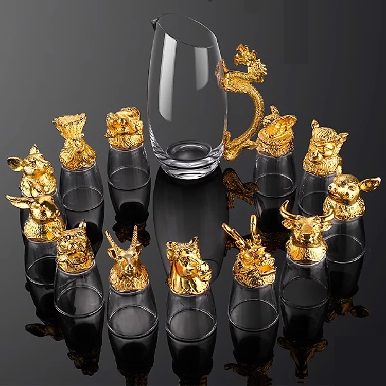 Bộ cốc chén rượu thủy tinh 12 con giáp có hộp đựng