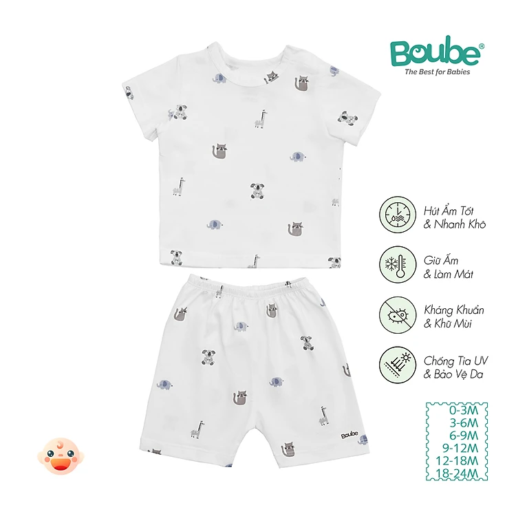 Bộ cộc tay cúc bấm vai cho bé sơ sinh và trẻ nhỏ họa tiết xinh xắn Boube, vải Cotton organic thoáng mát - Size 0-24M