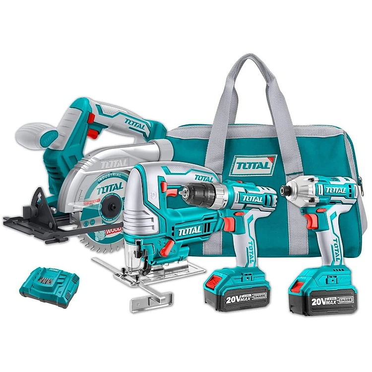 BỘ COMBO 4 MÁY CƯA ĐĨA TRÒN, MÁY CƯA LỌNG, MÁY SIẾT VÍT VÀ MÁY KHOAN DÙNG PIN 20V (2PIN 4 AH, 1 SẠC) TOTAL TCKLI2010 - HÀNG CHÍNH HÃNG