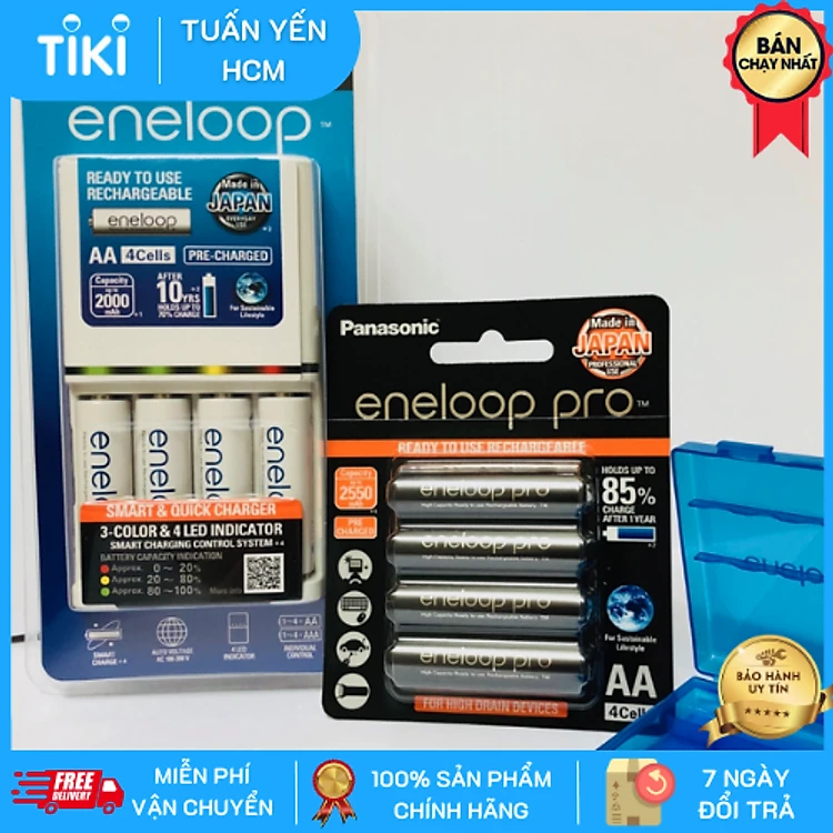 Bộ combo bộ sạc eneloop K-KJ55MCC40V và pin sạc eneloop pro vỉ 4 viên AA BK-3HCCE/4BV-Panasonic hàng chính hãng