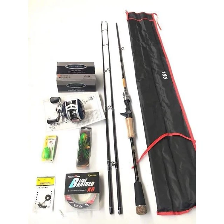 Bộ gồm: 01 cần lure máy ngang hoặc máy đứng super 2,4m thiết kế đẹp thời trang. 01 máy yumoshi LV 201 kim loại 12 + 1 bering và phụ kiện như hình vẽ. Cần gồm 2 khúc chất liệu cacbon, đọt ngọn 1,5mm tải cá 4-5kg