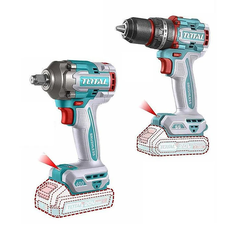 BỘ COMBO MÁY KHOAN BÚA TIDLI20668 1 & MÁY SIẾT BULOONG TIWLI2040 1 KHÔNG CHỔI THAN DÙNG PIN 20V TOTAL TCKLI20275 - HÀNG CHÍNH HÃNG