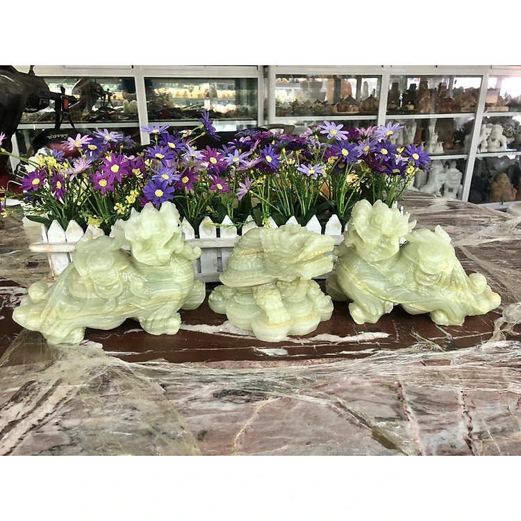 Bộ combo Tỳ Hưu dài 15cm và Tượng Long Quy Rùa đầu rồng phong thủy dài 15cm đá ngọc onyx