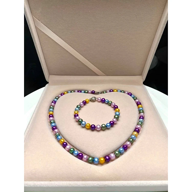 Bộ combo vòng, lắc đeo tay và dây chuyền, chuỗi đeo cổ ngọc trai nhiều màu