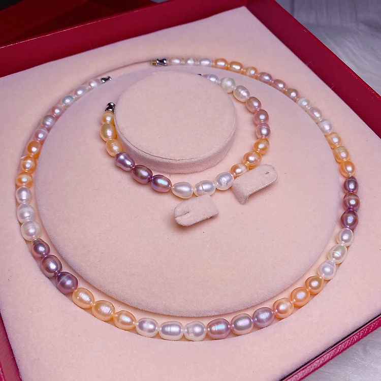 Bộ combo vòng, lắc đeo tay và dây chuyền, chuỗi đeo cổ ngọc trai nuôi màu tứ quý cho nữ