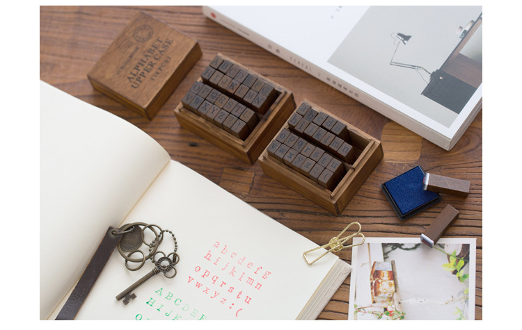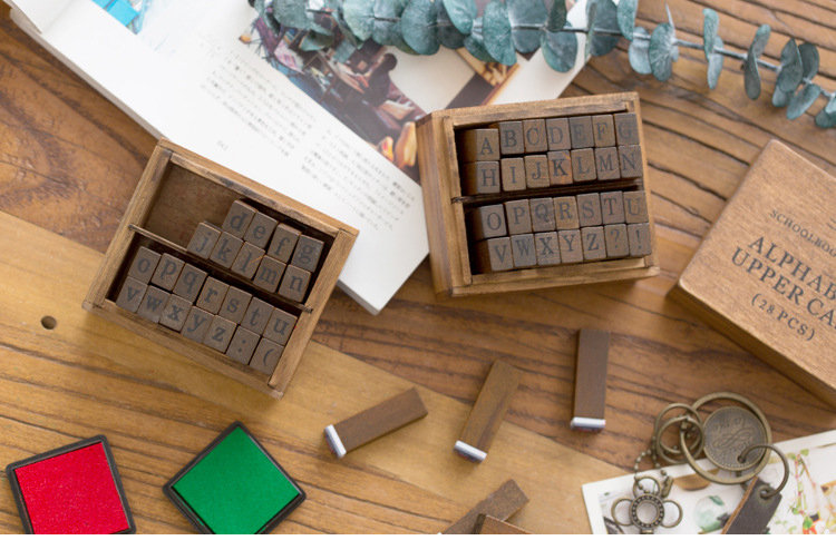 Bộ con 28 chữ cái Alphabet ink stamps trang trí sổ nhật ký, kế hoạch ST001