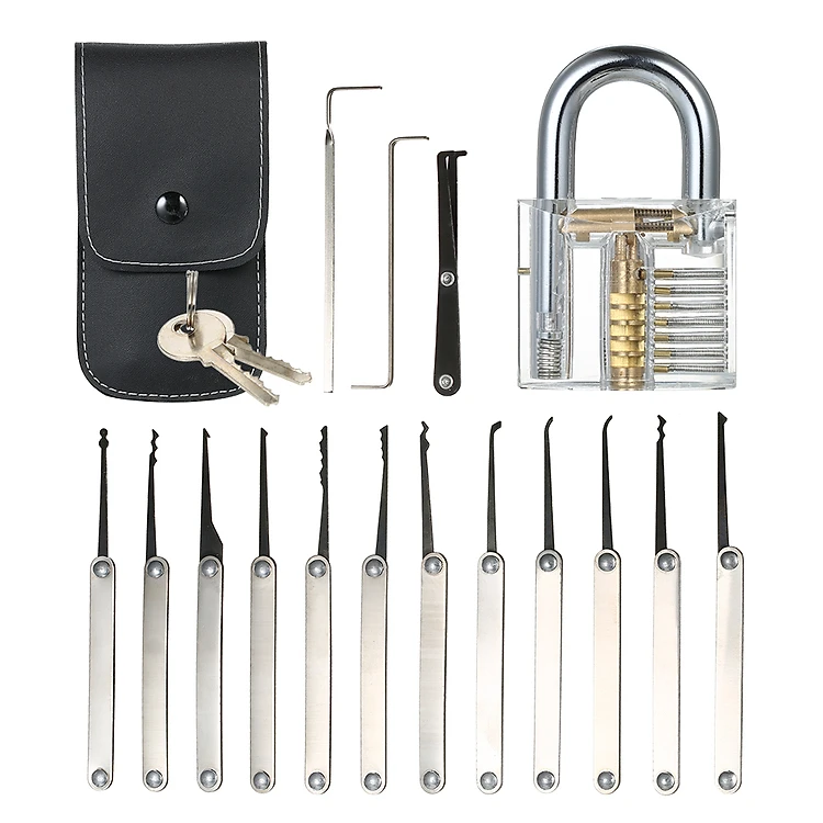 Bộ Công Cụ Mở Khóa Kèm Ổ Khóa Tập Luyện Trong Suốt Cho Thợ Sửa Khóa Mới Bắt Đầu Và Chuyên Nghiệp (15 Cái)